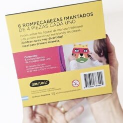 Rompecabezas de caras de animales. El juego contiene 6 figuras imantadas de 4 piezas cada una. Los podés armar correctamente o mezclar partes de uno y otro y armar tu propio personaje. Sugerido 3 años en adelante.