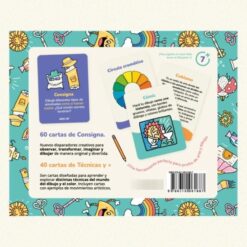 Trae 60 nuevas consignas y cartas de técnicas en lugar de dificultad. Ideal para niños que quieran explorar el dibujo, el arte y el color. Complementa al Dibujarte 1 y es una excelente herramienta para profes de arte y primaria.
