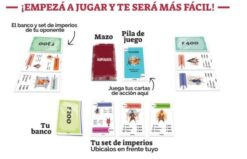 En Emperador debemos conseguir armar 3 sets de imperios para ser los ganadores. Para ello contaremos con multiples cartas de acción con distintos poderes para hacernos de dinero e imperios de otros jugadores, así como cobrarles recaudación a nuestros oponentes.