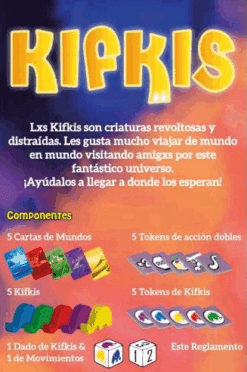 En Kifkis tendremos que indicar cuál es el mundo correcto al que viajará el Kiski activo luego de una tirada de dados. El juego ofrece un modo avanzado donde se activan tokens de acciones que pueden modificar el resultado de cuál es ese mundo correcto al que está viajando.