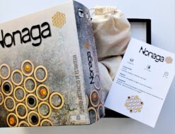 Nonaga tiene un área de juego hexagonal compuesta por 19 anillos, y cada jugador dispone de tres piezas que comienzan en vértices alternados alrededor del hexágono.