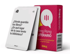 En Ping Pong Literario, tendremos cartas de preguntas que tendremos que preguntar, responder o adivinar en los 3 modos de juegos sugeridos. Ideal para aprender sobre los gustos literarios de las personas con las que estamos jugando.