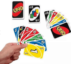 En UNO, deberemos descartarnos de todas nuestras cartas para ganar, jugando secuencias de colores o números, así como cartas especiales.